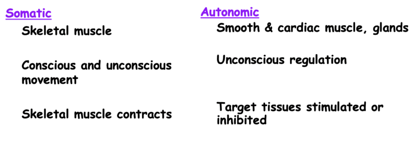 Compare autonomic nervous + somatic motor sytem