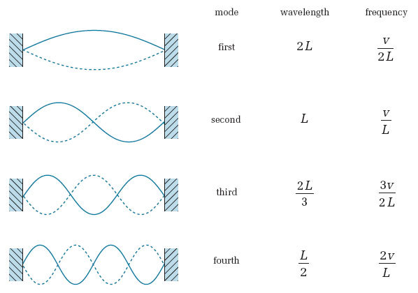 Harmonics are different modes of vibration of a wave with increasing frequency and decreasing wavelength
