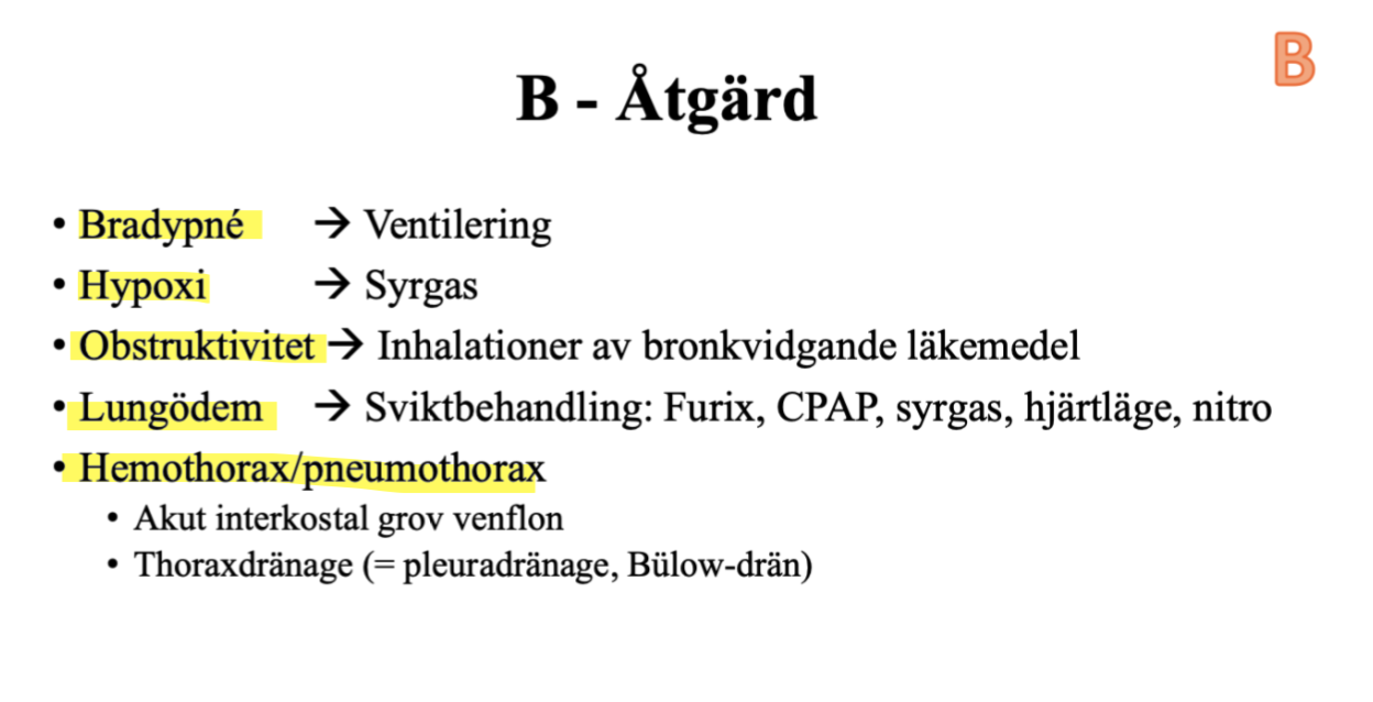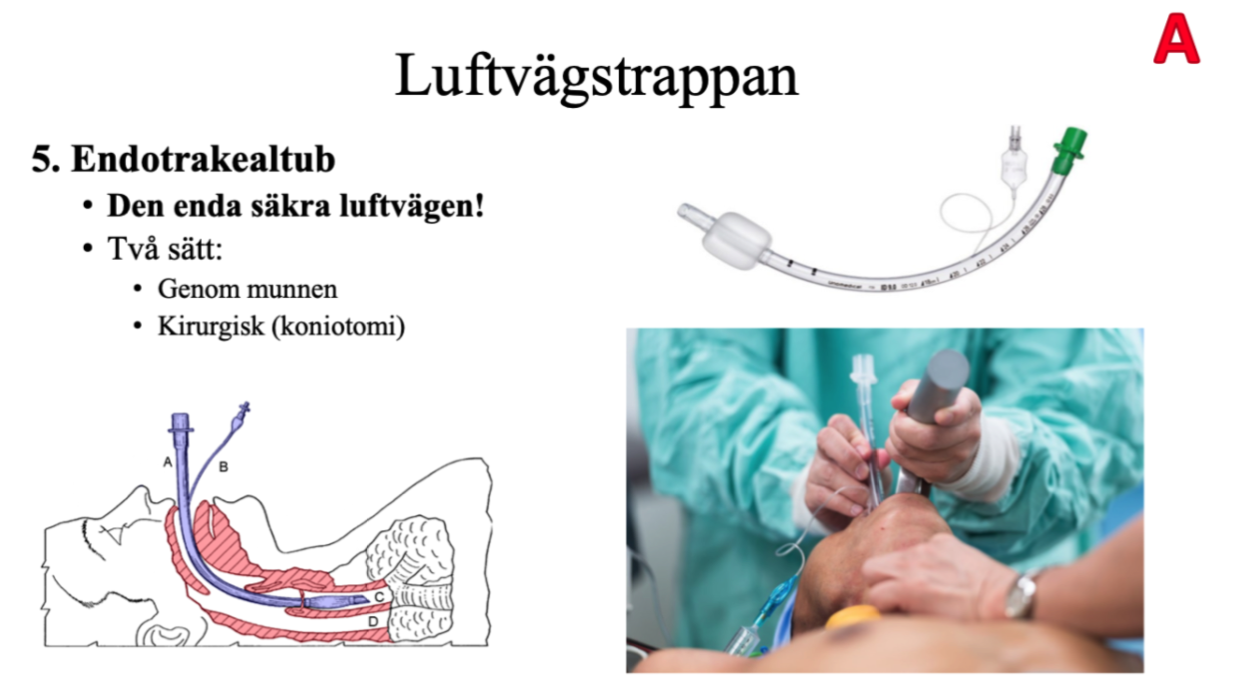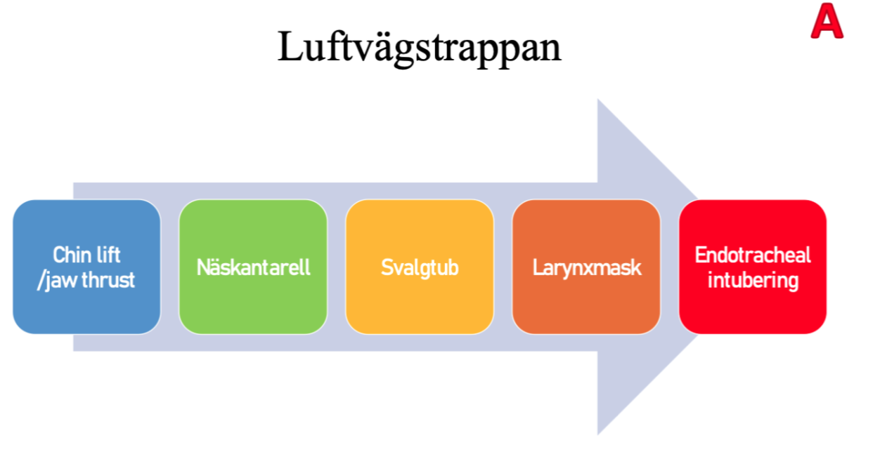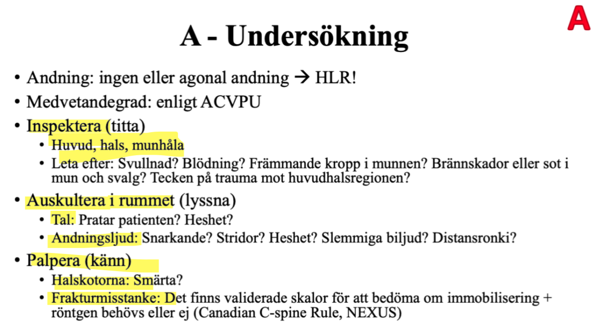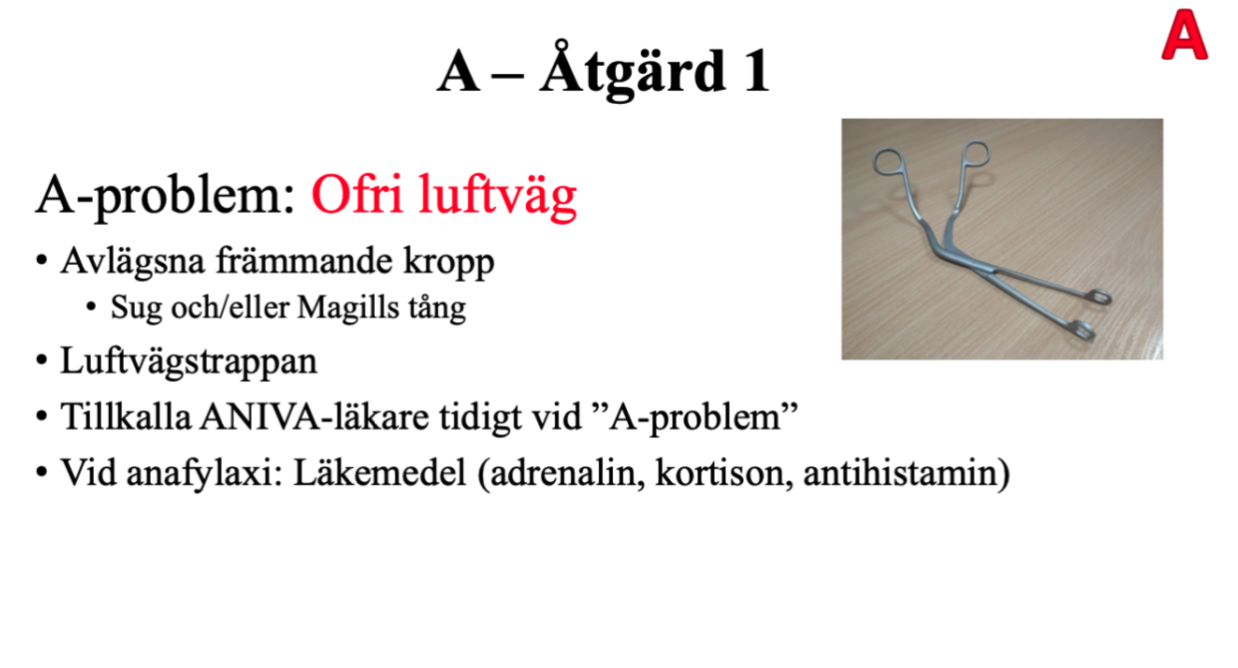- Beskriv åtgärder vid ett A-problem vid ofri luftväg (främmande kropp, medvetslöshet, svullnad).