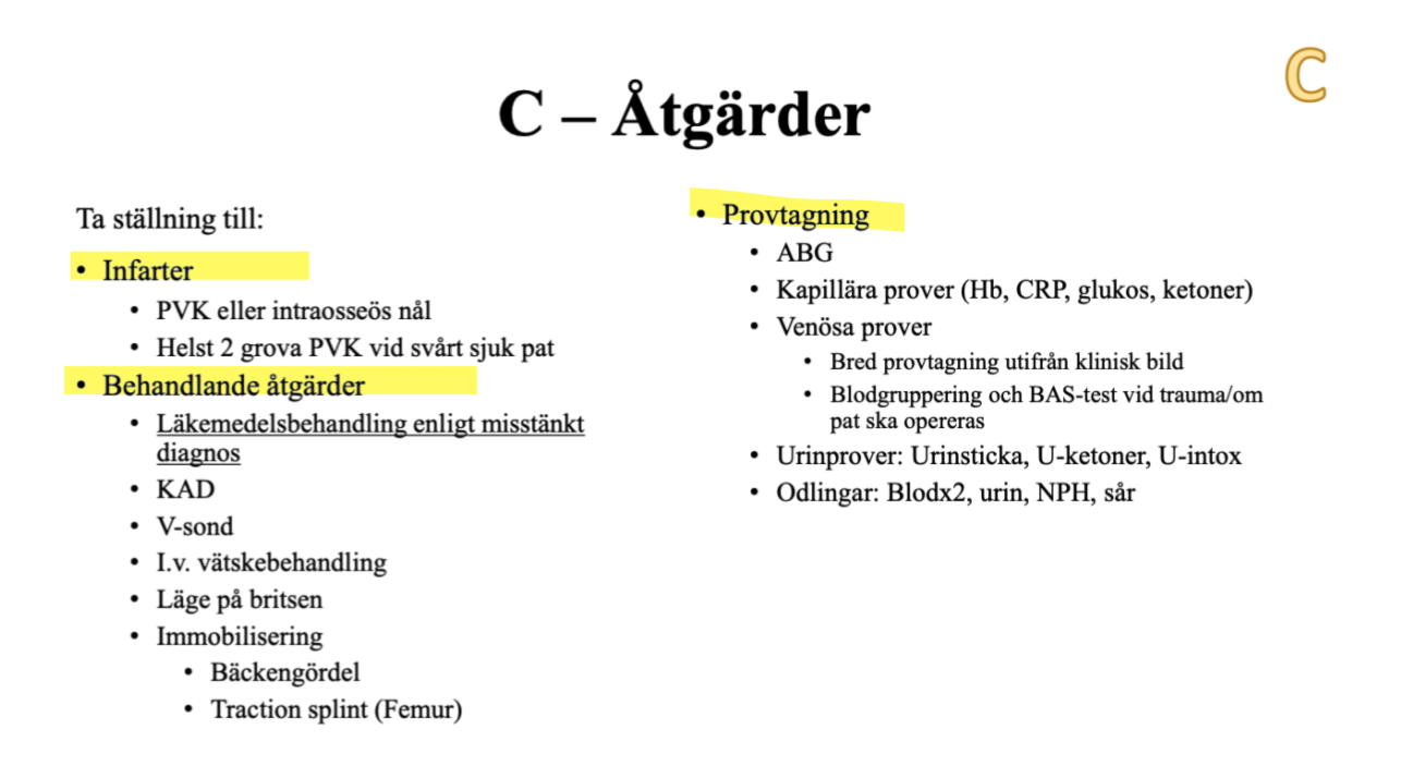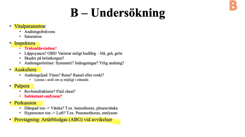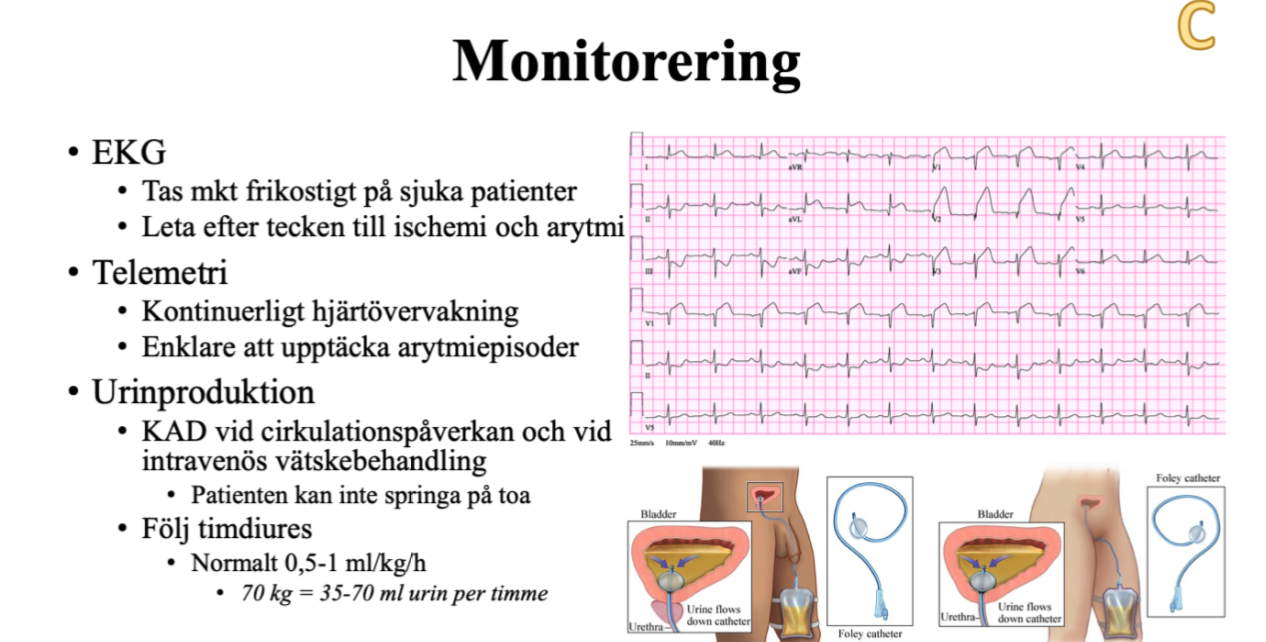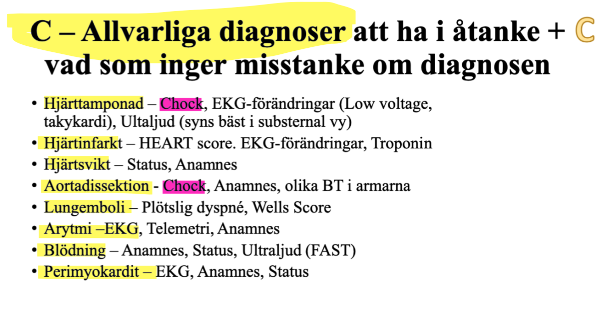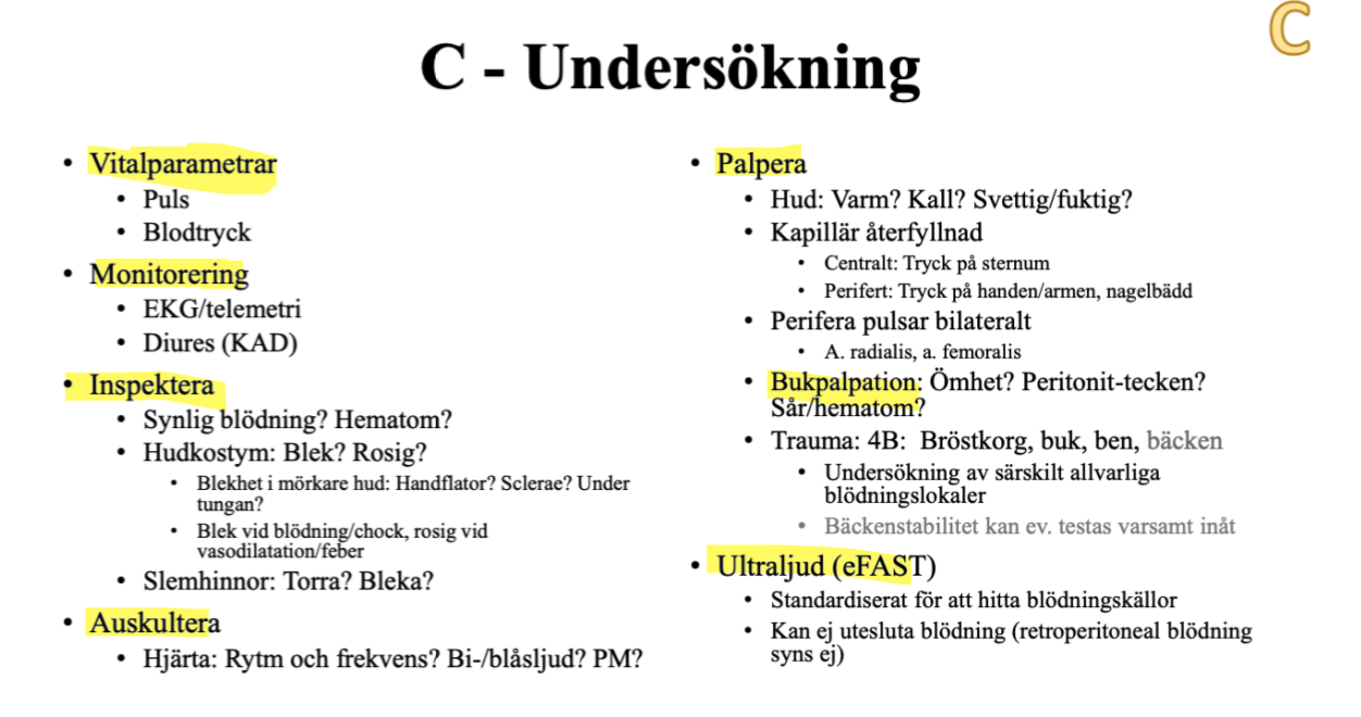 - Beskriv hur du undersöker på C (vitalparametrar, monitorering, klinisk undersökning)