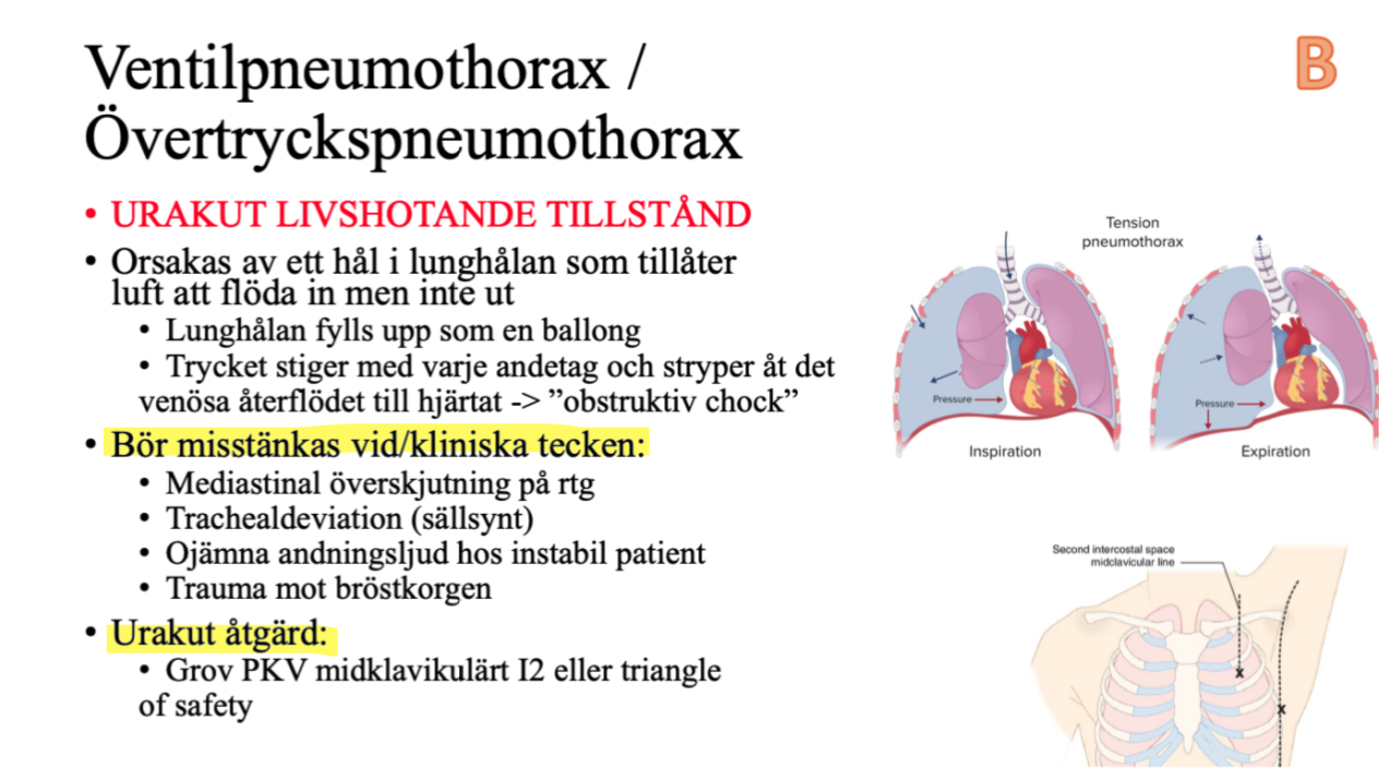 - vid vilka kliniska tecken bör du misstänka övertryckspneumothorax?