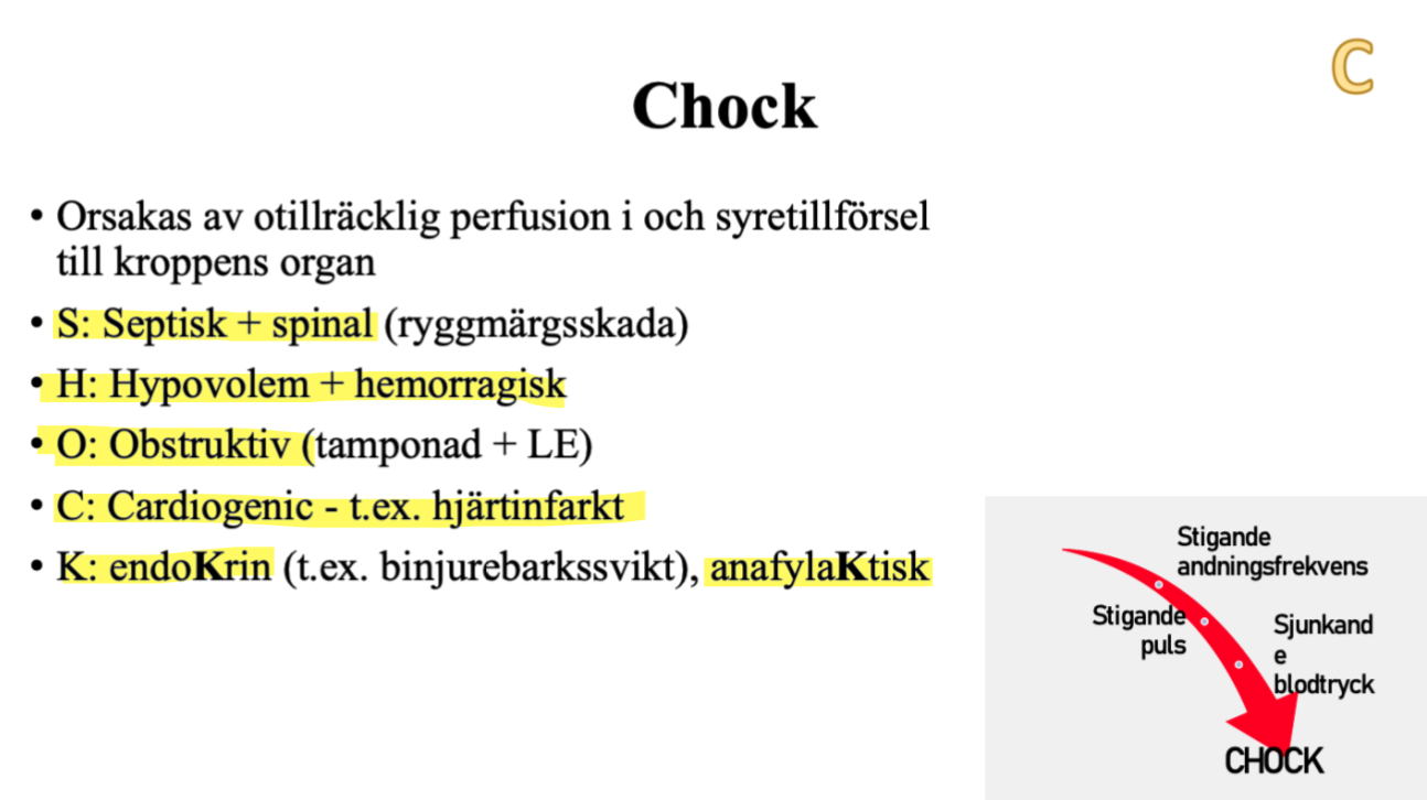 - Vilka orsaker finns till chock? (SHOCK - ramsan)