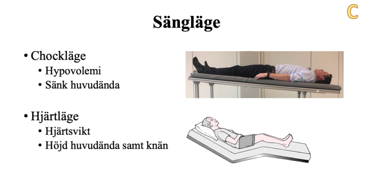 - Vad innebär chockläge och hjärtläge? När använder man dessa sänglägen?