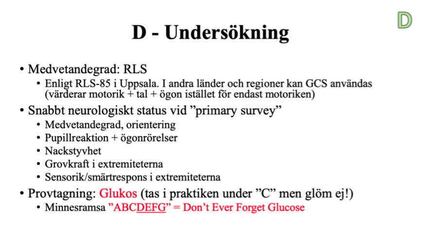 - Vad gör du i undersökningen på D förutom neurologstatus?