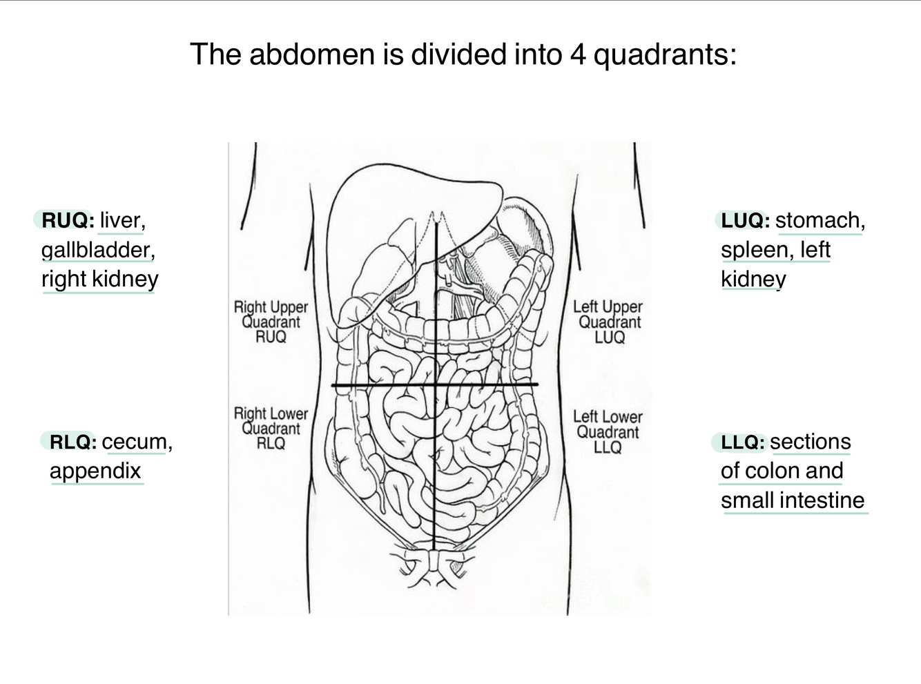 What quadrants is the abdomen divided into?