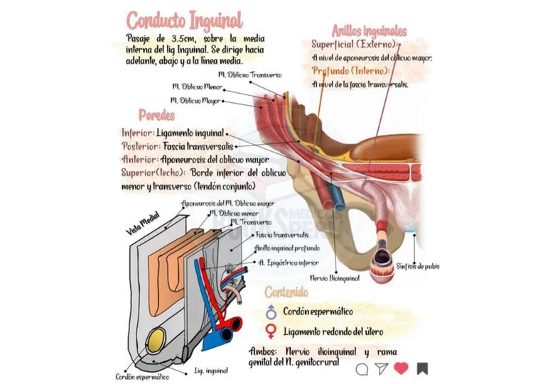 Contenido del conducto inguinal: hombres y mujeres