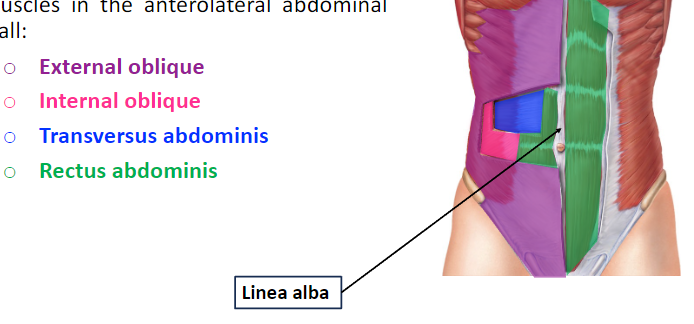 locate the proper four muscles in the anterolateral abdominal wall.
