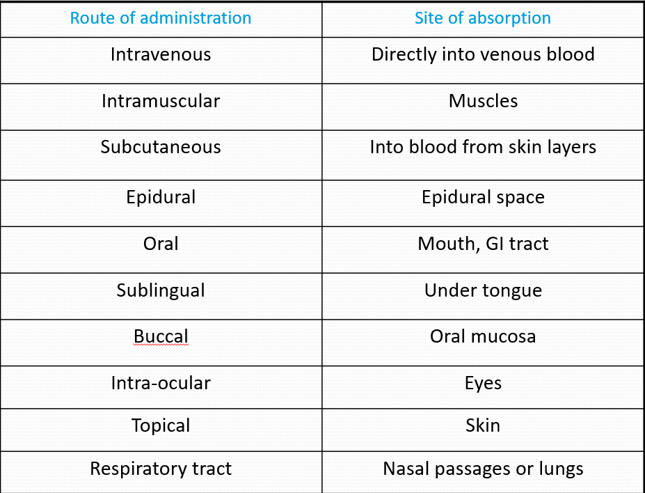 with routes of administration and their site of absorption