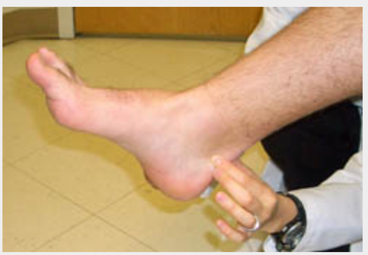 Thompson test: with the patient prone (face down), calf muscles are squeezed, which should intrinsically plantar flex the foot if the Achilles’ is intact.