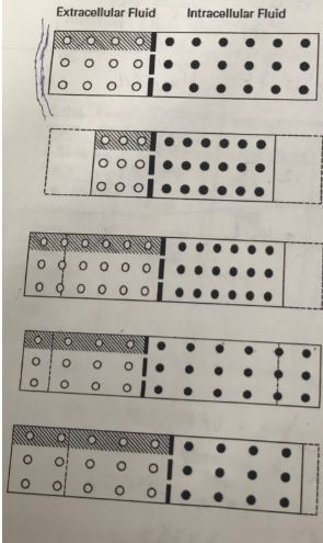 Hypovolemia will produce an alkalosis only when the fluid lost contains an excess of hydrogen ions or an excess of chloride in relation to bicarbonate