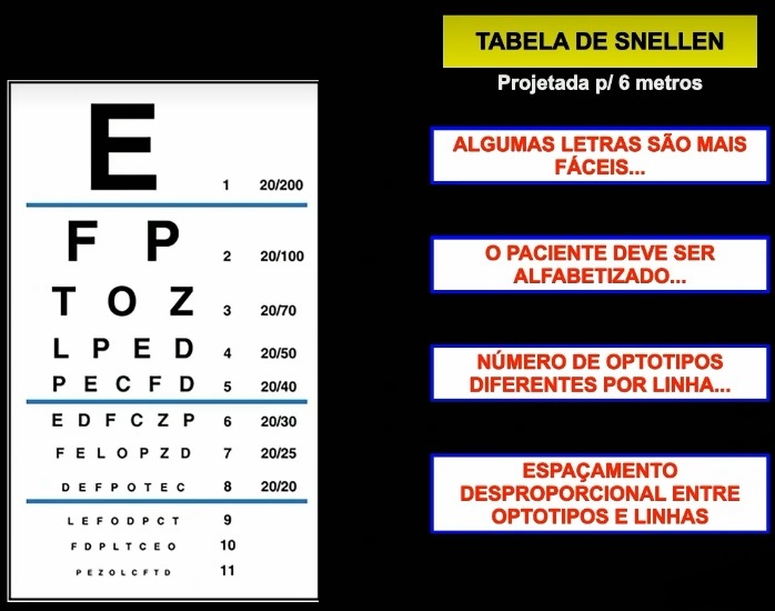 Quais são as principais características da Tabela de Snellen?