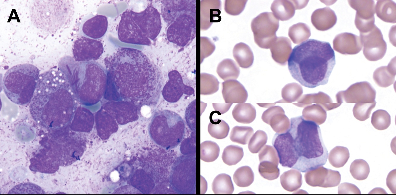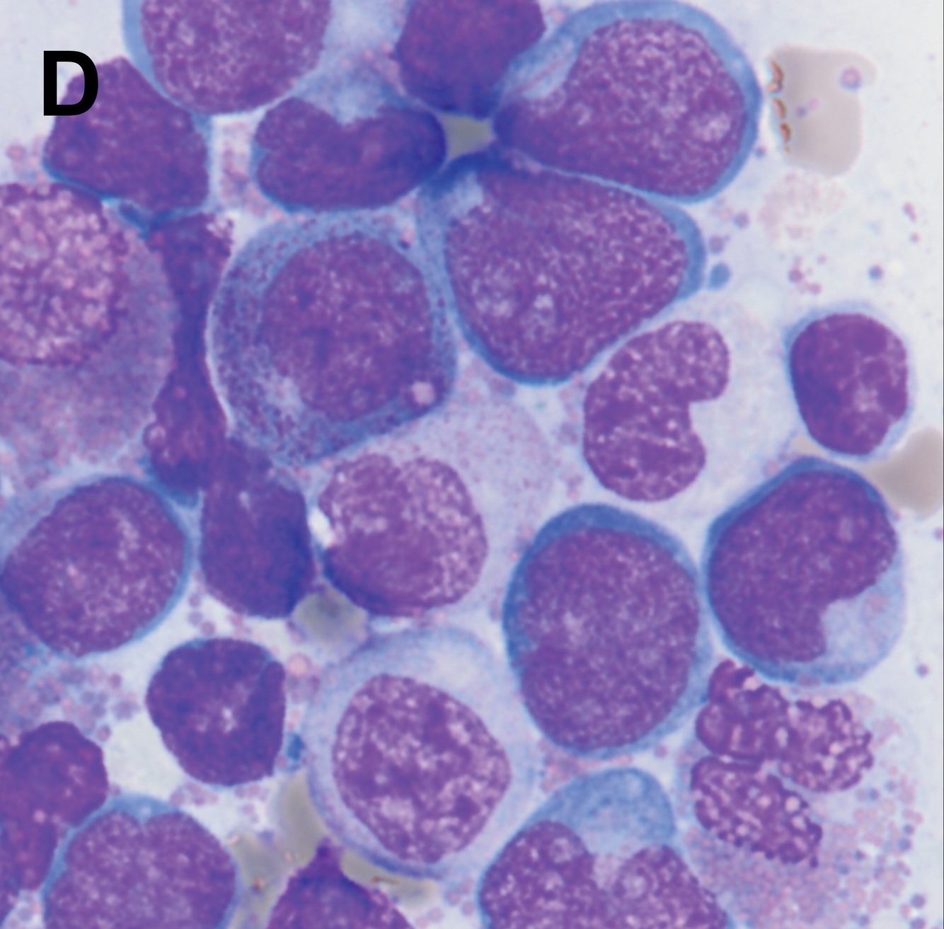 Consists of numerous cytologically atypical cells that resemble promyelocytes, frequently containing single or multiple Auer rods, nuclear bilobation, sometimes with “sliding-plate”, “coin-on-coin” or “butterfly-shaped” nuclei, with a thin nuclear isthmus connecting the more bulbous nuclear lobes.