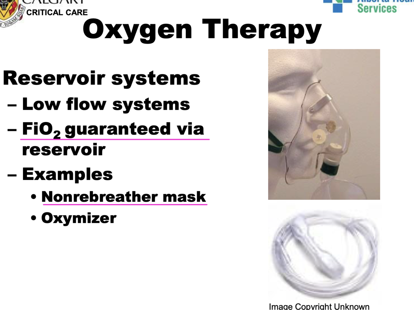 for O2 therapy: outline some eservoir systems