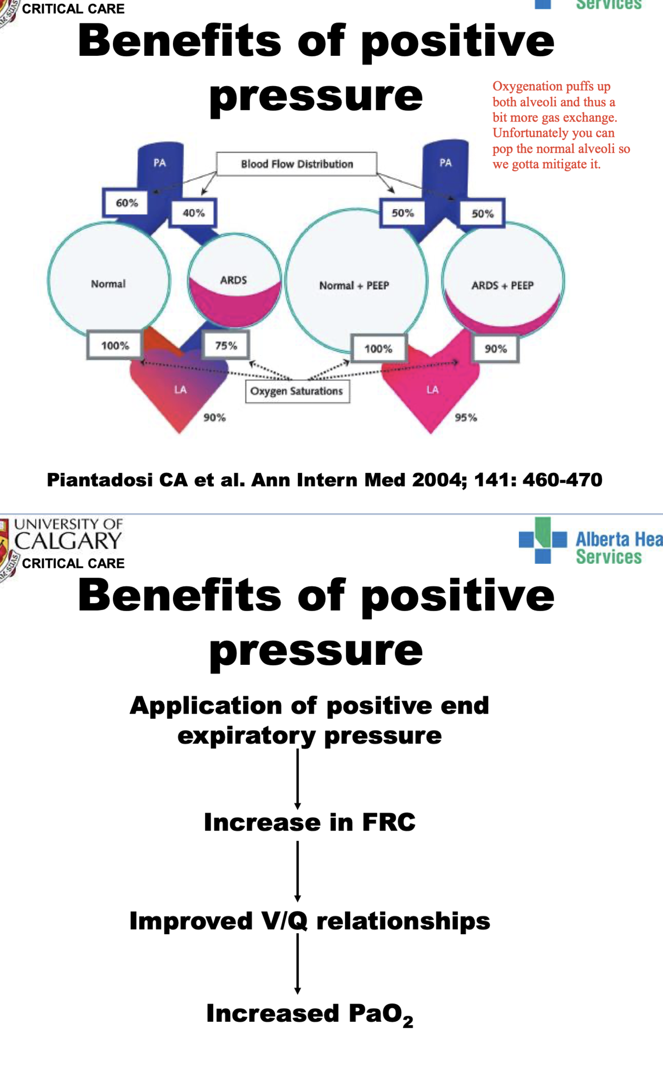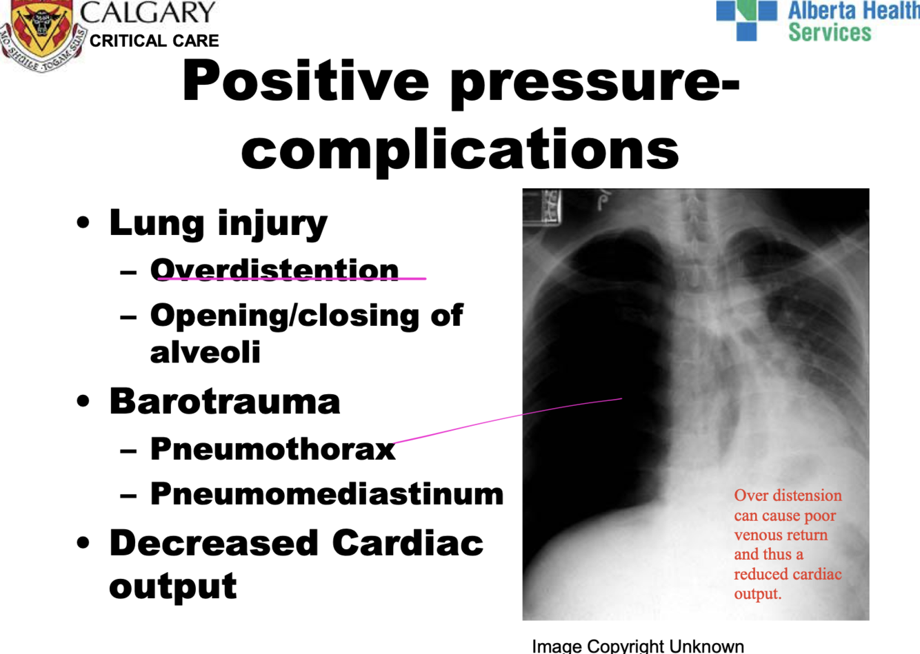 note :positive pressure (ventilation) is good cause it can re-puff up collapsed alveoli but you gotta be careful so the noraml alveoli don’t pop.