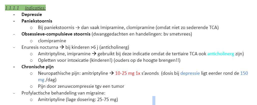 [TCA zorgt voor minder heropname 5HT en als je afbraak remmers geeft dan verhoog je kans op serotonine syndroom]