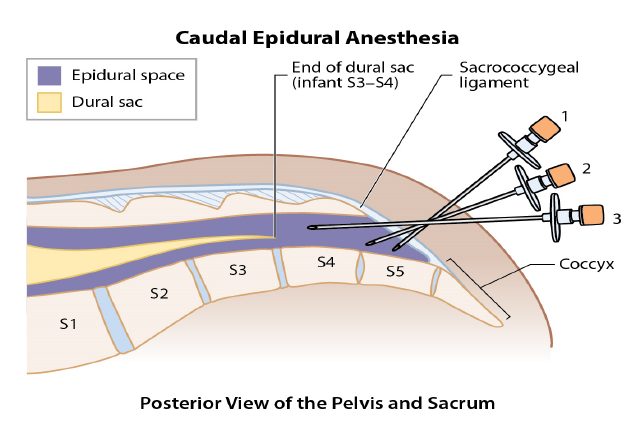 The caudal space is simply the sacral portion of the epidural space. The anatomical landmarks for performing a caudal block