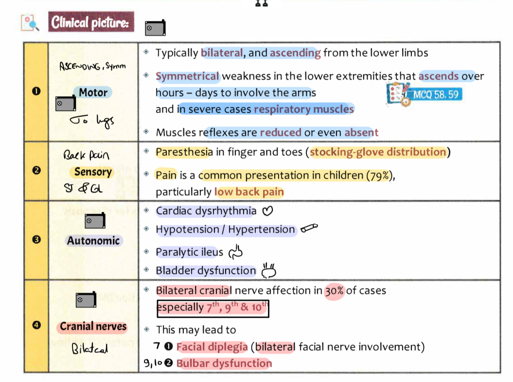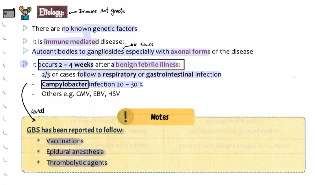 It occurs 2 - 4 weeks after a benign febrile illness: