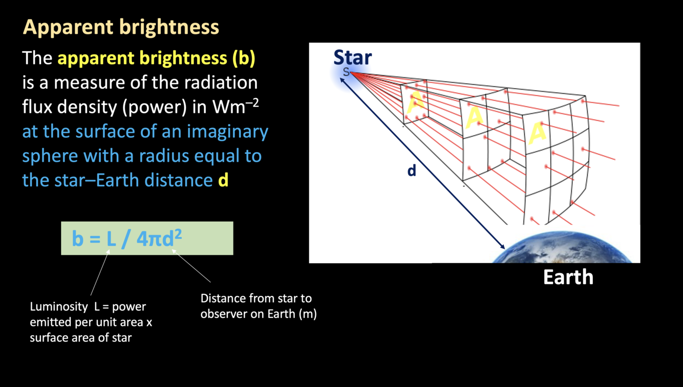 The Luminosity L of a star is the total rate at which energy is radiated by its whole surface over all wavelengths. So