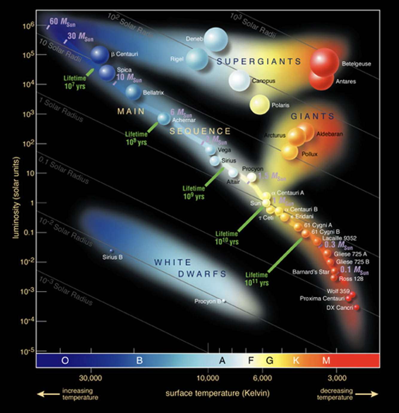 On the y-axis, luminosity increases going up. The scale is logarithmic