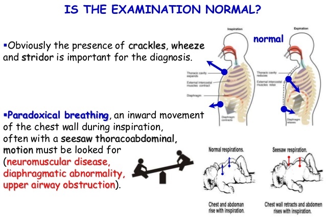 This is a sign of diaphragmatic or respiratory muscle fatigue and suggests (complete) airway obstruction. The chest is drawn in and the abdomen expands on inspiration, and the opposite occurs on expiration.