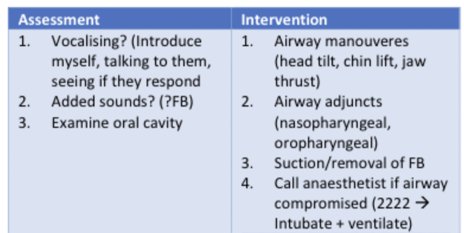 ‘I would assess the patency of the patient’s airway by checking whether they were