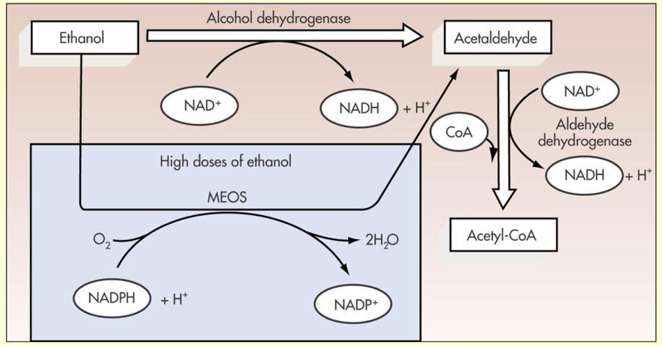 2) microsomal ethanol oxidizing system (MEOS)
