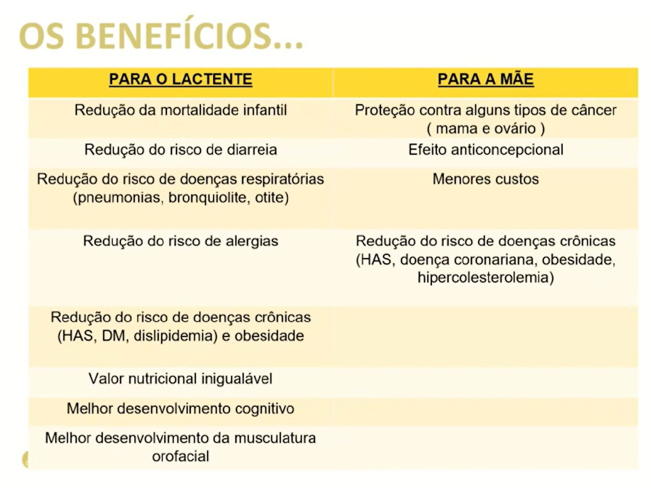 Cite alguma benefícios do aleitamento materno tanto para mãe quanto para filho: