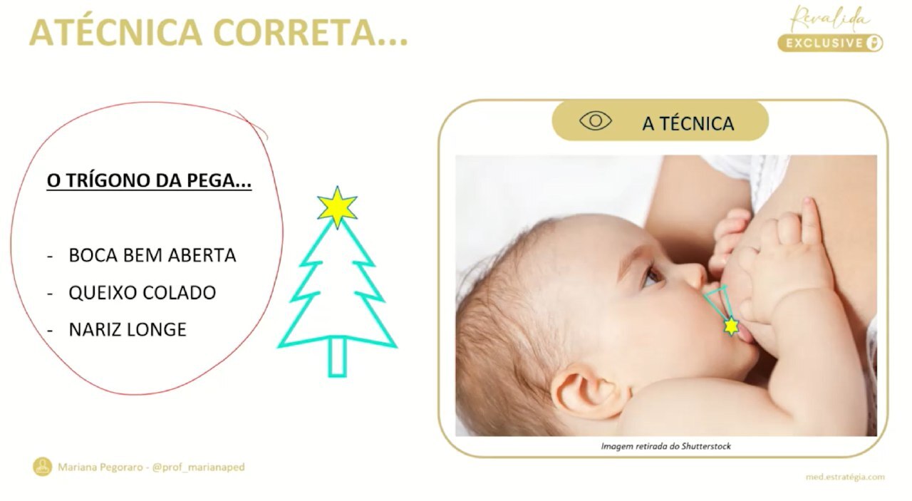 O recém nascido deve estar com a boca bem aberta, o nariz dele deve estar longe da mama e o queixo dele deve estar grudado na mama. Isso acaba formando o trigono que é o que tá na imagem observa.