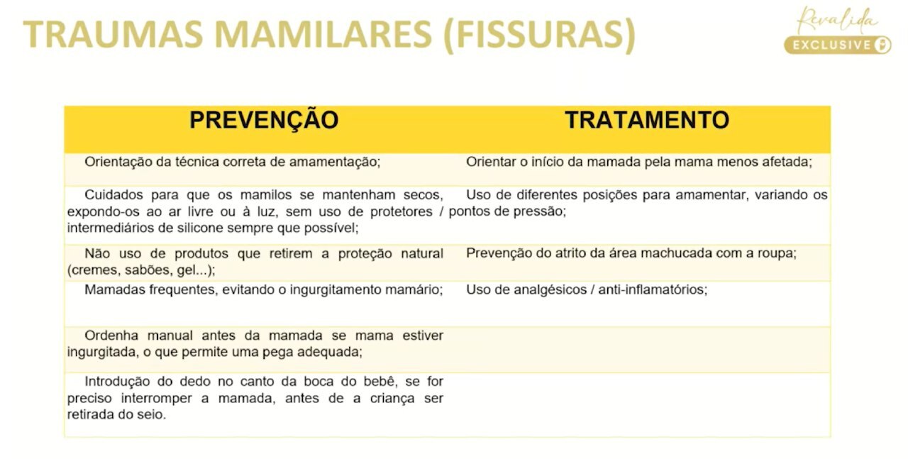 Quais são as formas de prevenção de tratamento para traumas mamilares fissuras ) durante a amamentação?