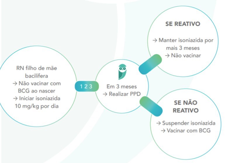Filhos de mãe com tuberculose pulmonar não deve receber a vacina BCG ao Nascimento, e sim começar o tratamento profilático com isoniazida por 3 meses e a mãe pode sim amamentar porém usando Máscara.