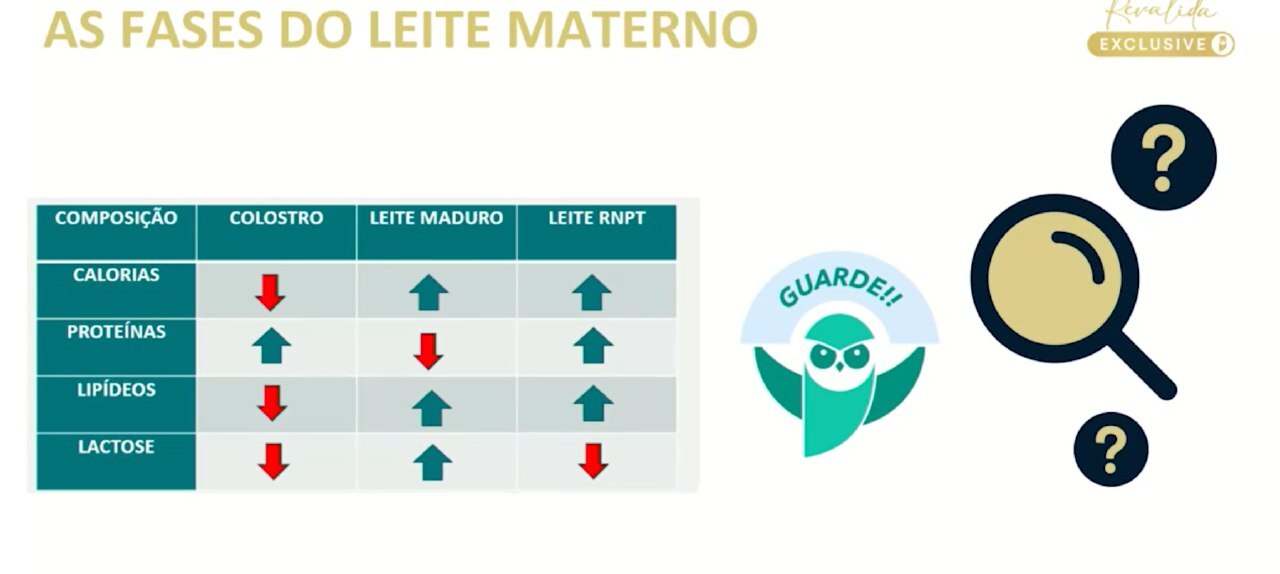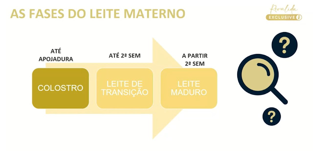 Colostro é rico em Água, proteína e fatores imunológicos como IgA (por isso é chamado de vacina natural). O colostro ele tem início desde o nascimento até mais ou menos entre o quarto dia, pois a partir do terceiro / quarto dia vai começar a apojadura que é a saída do leite materno.