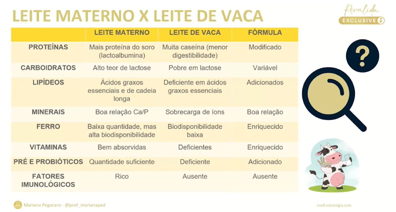 leite de vaca porém de baixa biodisponibilidade enquanto que o leite materno tem baixo ferro porém é de alta biodisponibilidade.