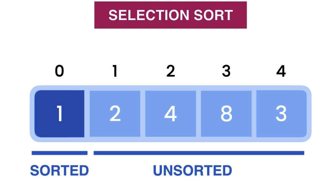 In each pass we select the minimum value (from unsorted part) and swap this index with next index(in sorted part).