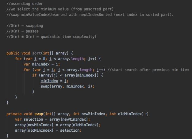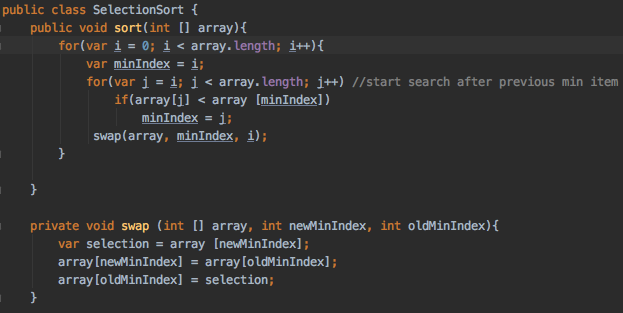 How do we implement selectionSort ( ) using java?