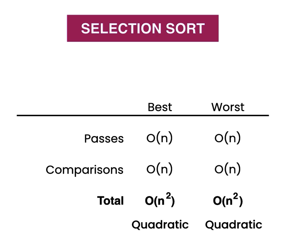 What is the time complexity of the selection sort algorithm?