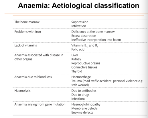 What are the aetiological casses of anaemia?
