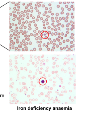 Each molecule of haemoglobin must have an atom of iron to which O2 can bind to in the lungs. Therefore a lack of iron directly impacts the amount of O2 that can be transported to the tissues.