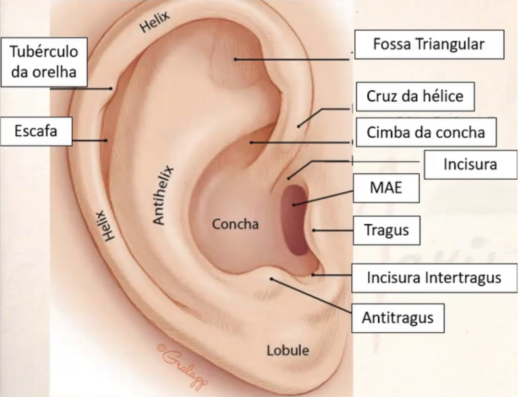 Qual região da orelha externa corresponde á parte MEDIAL e LATERAL?