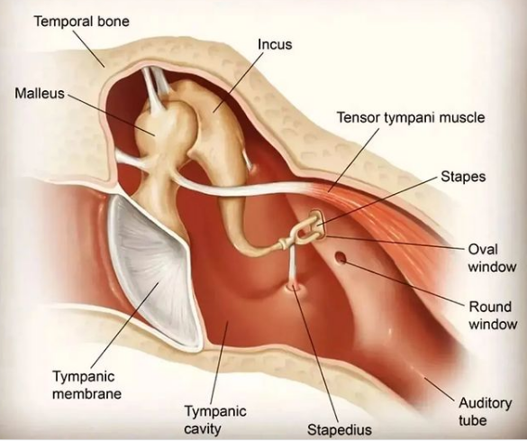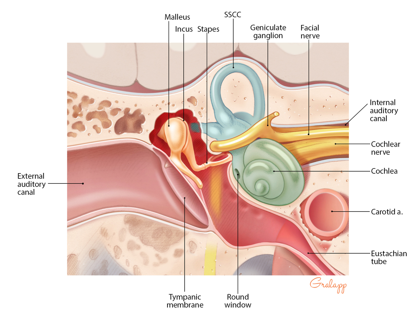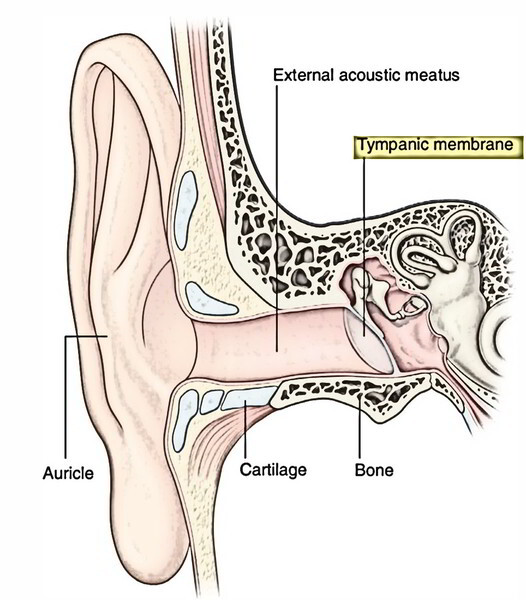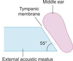 Essa diferença faz com que tenha uma inclinação da membrana timpânica de cerca de 55 graus.