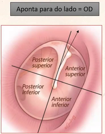 Quais os 4 quadrantes da membrana timpânica e como identificar o lado que está sendo examinado?