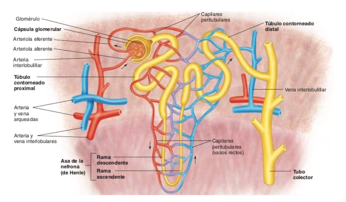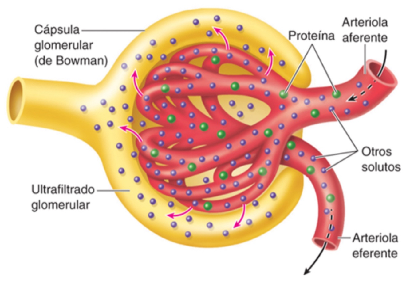 Proceso inicia en la arteriola aferente que vierte su contenido a la cápsula de Bowman