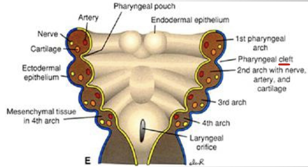 3. Two mandibular prominences: caudally (Ventral part of first pharyngeal arch).