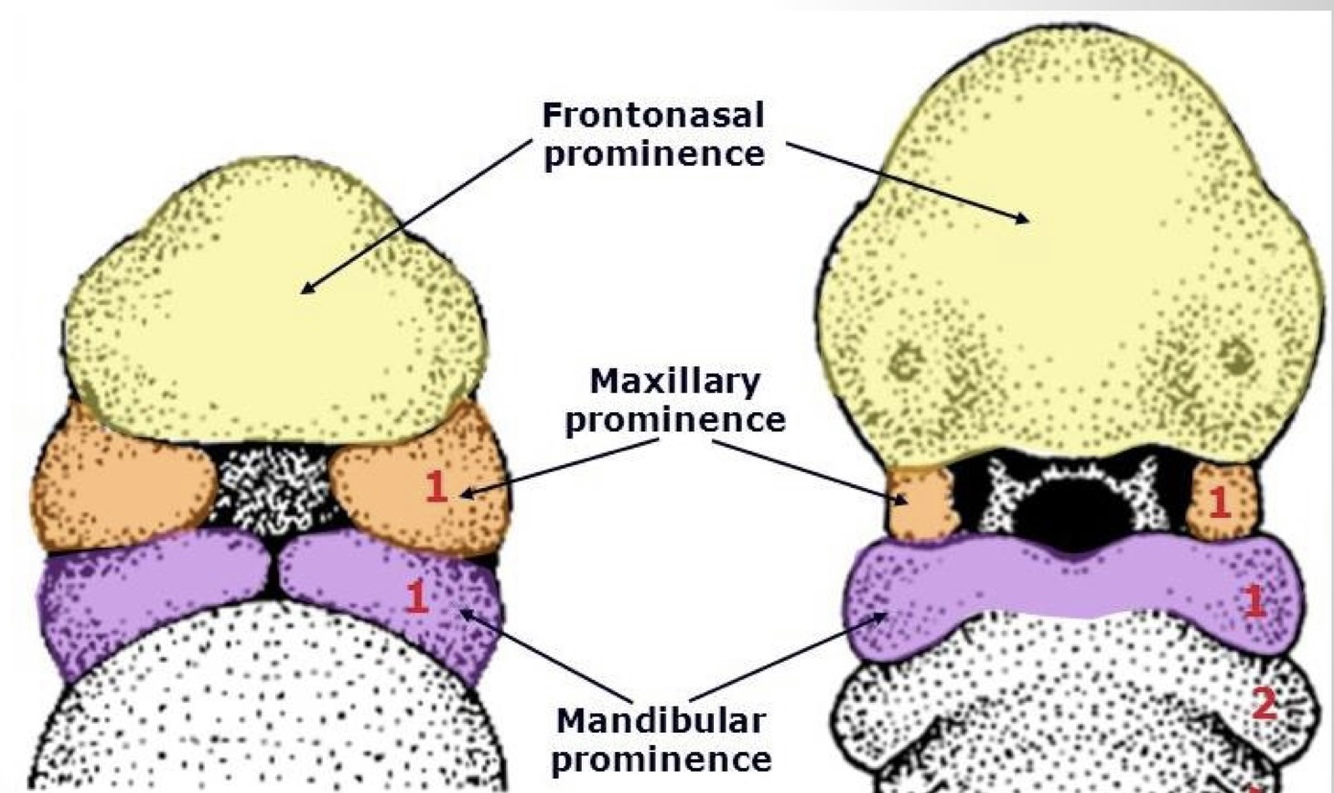 2. Two maxillary prominences: one on each side (Dorsal part of first pharyngeal arch).