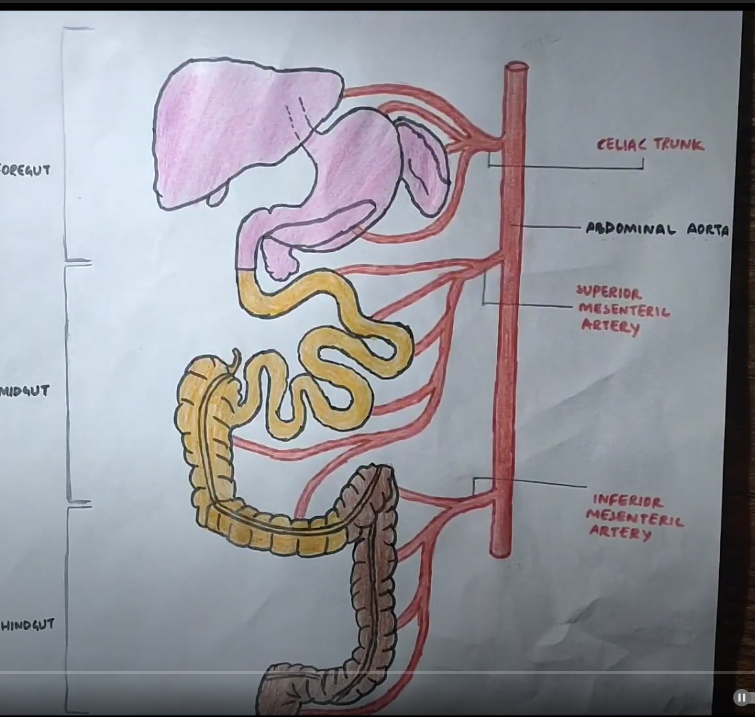 The left colon is embryologically part of the hind gut. Which accounts for its separate blood supply via the IMA.