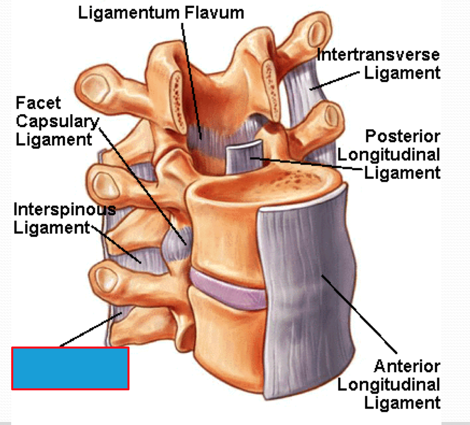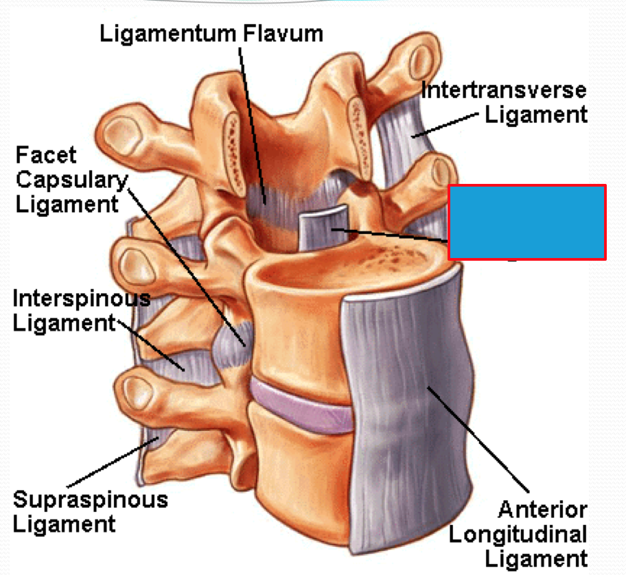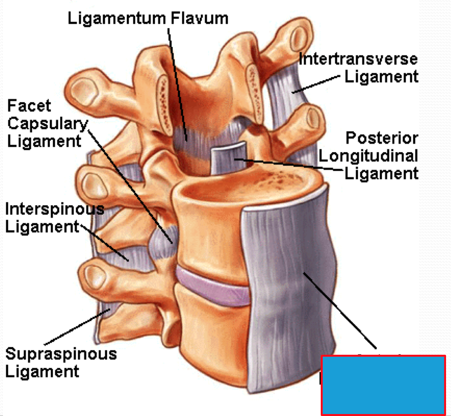 Posterior longitudinal ligament – runs within the vertebral canal on the posterior aspect of the vertebral bodies