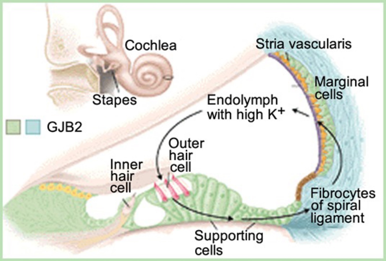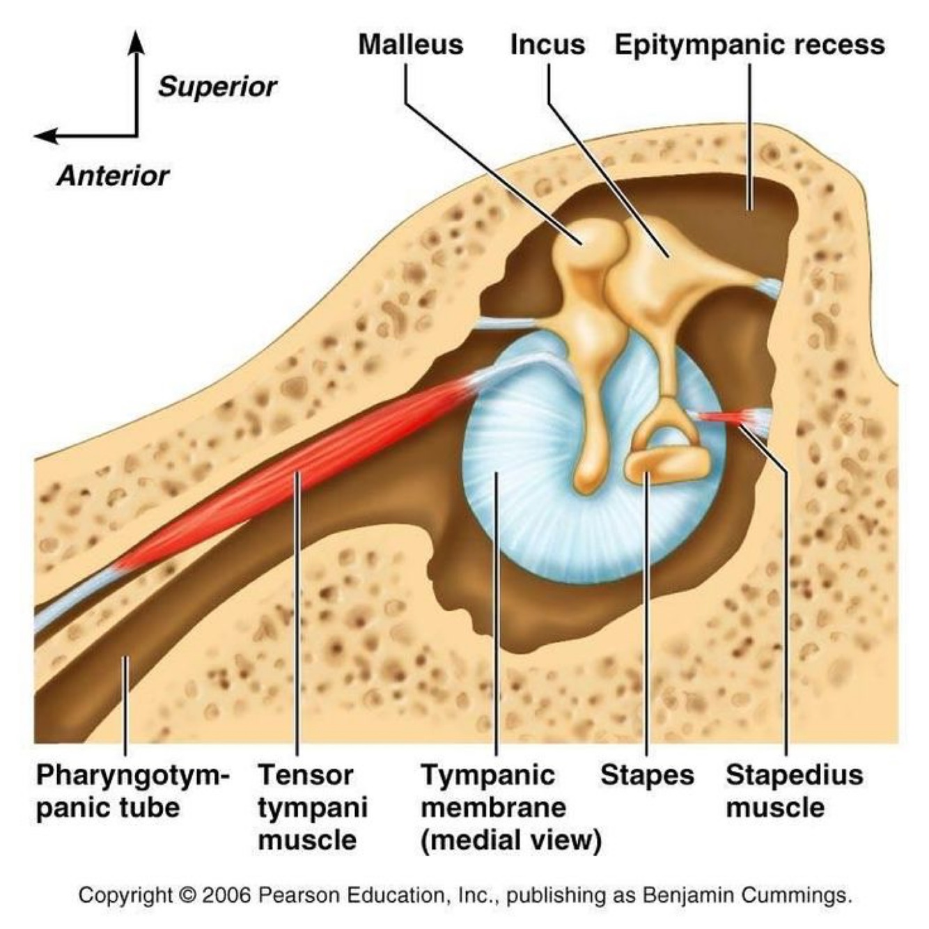 (Stapes bones are shown as a stirrup-shaped stick figure).