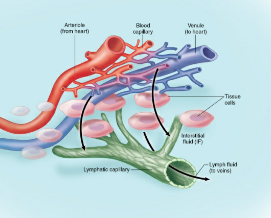 therefore: lymphatic vessels exist to act as “drains” to collect excess tissue fluid and return it to venous blood just before it reaches the heart