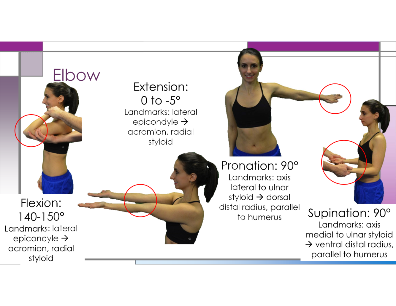 What is the normal angle for elbow supination?