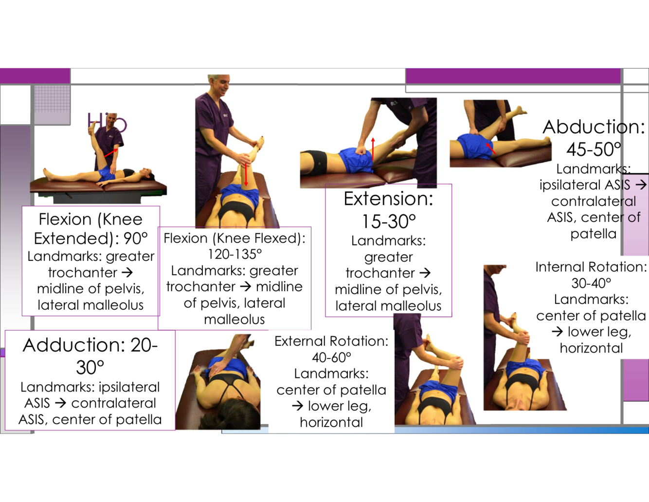 what is the normal angle for hip flexion (knee extended)