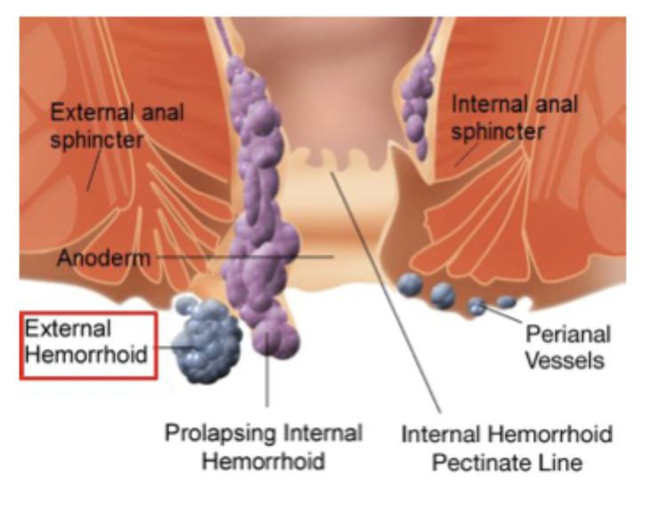 -occur when the veins in this area experience high pressure; pushing, straining, increased intraabdominal pressure etc